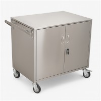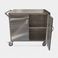 Su sistema de puertas de doble hoja ofrece un acceso amplio y cómodo al interior, mientras que la repisa interna permite organizar insumos y textiles de forma eficiente. Además, incorpora manilla ergonómica para una conducción segura y ruedas industriales de 4”, pensadas para un desplazamiento suave y maniobrabilidad en pasillos y áreas asistenciales.