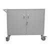 Su sistema de puertas de doble hoja ofrece un acceso amplio y cómodo al interior, mientras que la repisa interna permite organizar insumos y textiles de forma eficiente. Además, incorpora manilla ergonómica para una conducción segura y ruedas industriales de 4”, pensadas para un desplazamiento suave y maniobrabilidad en pasillos y áreas asistenciales.