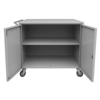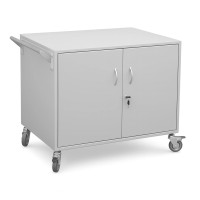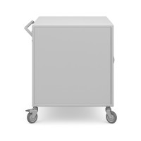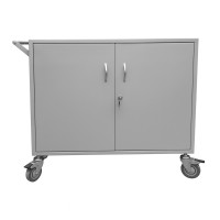 Fabricado en acero esmaltado con pintura termo–convertible, ofrece una superficie resistente, lavable y apta para uso clínico permanente. Cuenta con dos puertas independientes con cerradura, que permiten proteger el contenido, además de una repisa interior que optimiza la organización. El asa posterior facilita la movilidad y las ruedas industriales de 4” con freno otorgan control y estabilidad en desplazamientos.