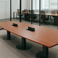 La Mesa de Reuniones para 14 Personas es la elección perfecta para espacios corporativos que buscan combinar elegancia, amplitud y practicidad. Diseñada para grandes equipos, esta mesa permite una comunicación fluida y cómoda en reuniones ejecutivas, directorios o salas de conferencias.