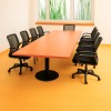 Mesa reuniones 10-12 Personas. Sobre con corte recto, elaborado en madera aglomerada de 18mm de grosor, con los cantos enchapados. Bases elaboradas en madera aglomerada de 18mm de grosor, cantos enchapados . Posibilidad de poner pasa cables. Medidas de 3,40 mts de largo x 1.20 cms de ancho x 77cms de alto. Color cerezo o peral. Esta mesa la cubierta es dividida en dos partes para su transporte e instalación