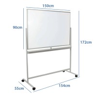 Equipada con ruedas de PU/PVC giratorias y bloqueables, ofrece un desplazamiento suave y seguro, manteniendo la estabilidad durante su uso. El marco de aluminio con tope de seguridad permite un giro de 360° controlado, mientras que su superficie acrílica garantiza un borrado rápido y limpio.