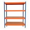 Mantén tu espacio organizado con este estante semi industrial, diseñado para ofrecer resistencia y funcionalidad en un formato más compacto. Ideal para bodegas, talleres, negocios o el hogar, su estructura en naranjo con azul no solo es resistente, sino que también aporta un toque moderno a cualquier ambiente.