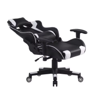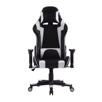 Silla gamer/ergonómica Tevinil negro/blanco con mecanismo sincrónico, reclinación 180°, brazos regulables y soporte dorsal. Soporta 120 kg.