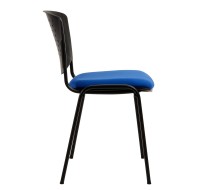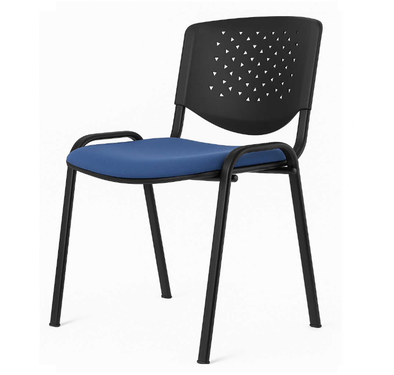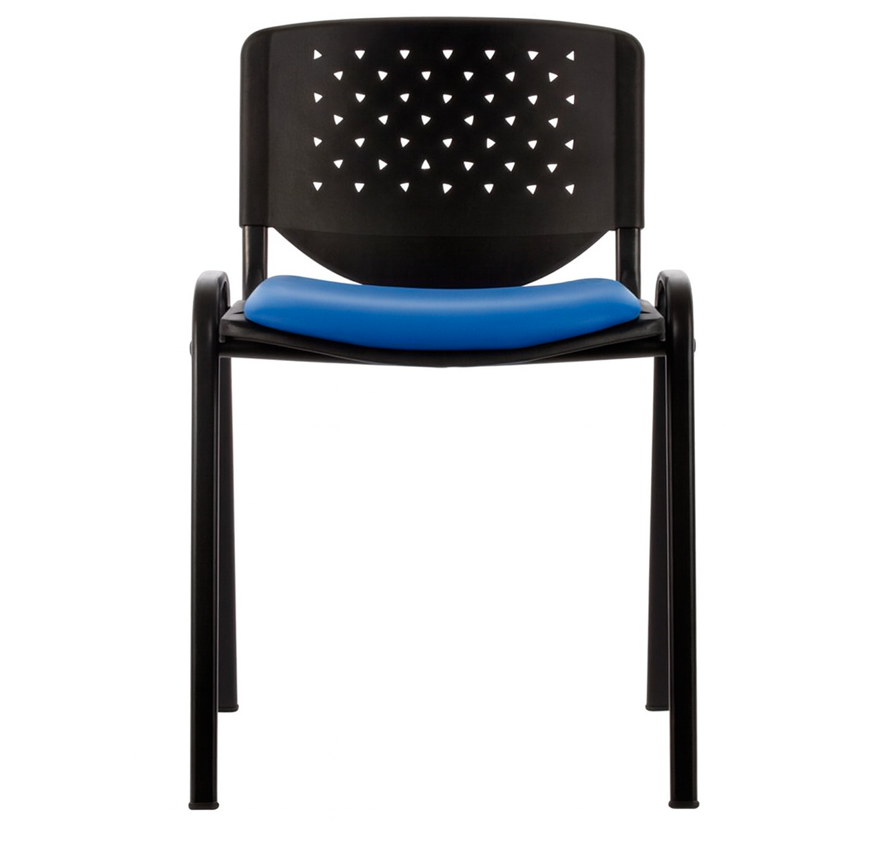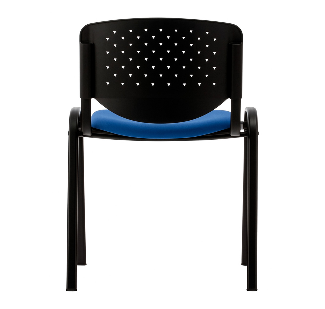 Su estructura metálica de cuatro patas en color negro garantiza firmeza y estabilidad, mientras que su respaldo de polipropileno perforado favorece la ventilación y aporta un estilo contemporáneo y elegante.