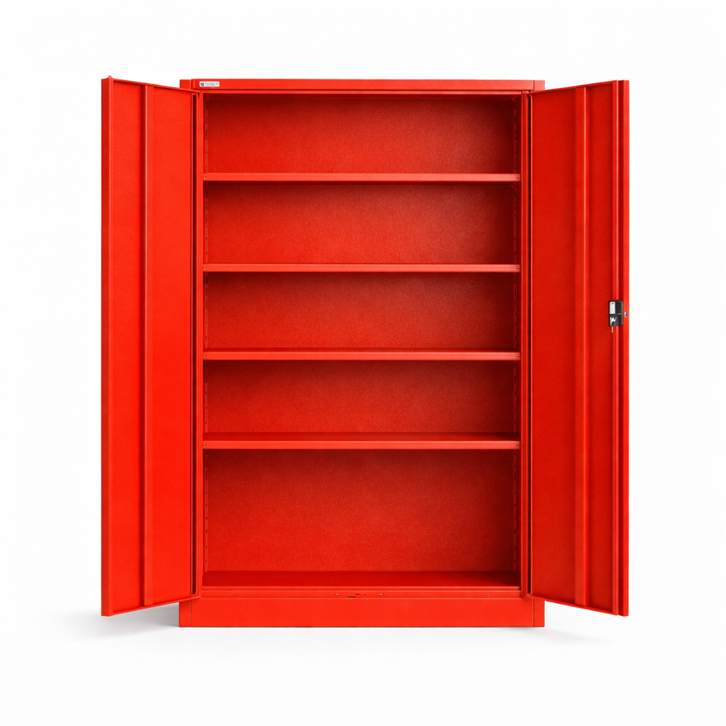El Storage Metlico 2 Puertas ROJO es un gabinete de almacenamiento diseado para operacin en entornos industriales y comerciales, donde se requiere resguardo, orden y control de acceso a insumos, herramientas o documentacin. Su construccin en acero laminado y su sistema de cerradura tipo chapa con llave permiten un uso continuo en bodegas, talleres y reas administrativas.